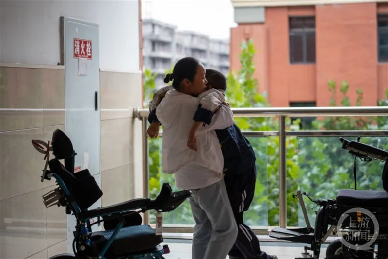 在快要失去行走能力时,罗睿燊担心地问过:“妈妈,我的腿越来越没力了,我是不是要瘫痪了呀?”周朝喜笑着对儿子说,“不要害怕,妈妈会一直陪着你,做你的双腿,带你去任何你想去的地方!”