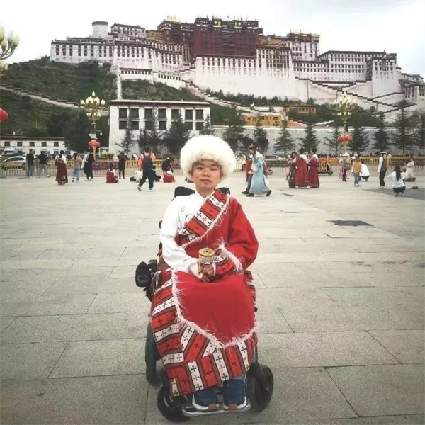 当罗睿燊换上传统藏式服装,坐着轮椅在布达拉宫脚下留影,当雅鲁藏布江大峡谷壮阔的景色一一铺陈于脚下,他驻足聆听江水静静流淌,当在开阔的平地上,罗睿燊开着轮椅跑得飞快,把妈妈远远“甩”在身后时,周朝喜望着儿子的身影,感觉自己的幸福不比天底下任何一个母亲少。