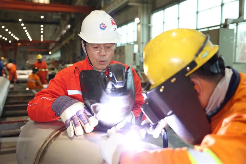 朱化学指导徒弟进行焊接作业。广东省文明办供图