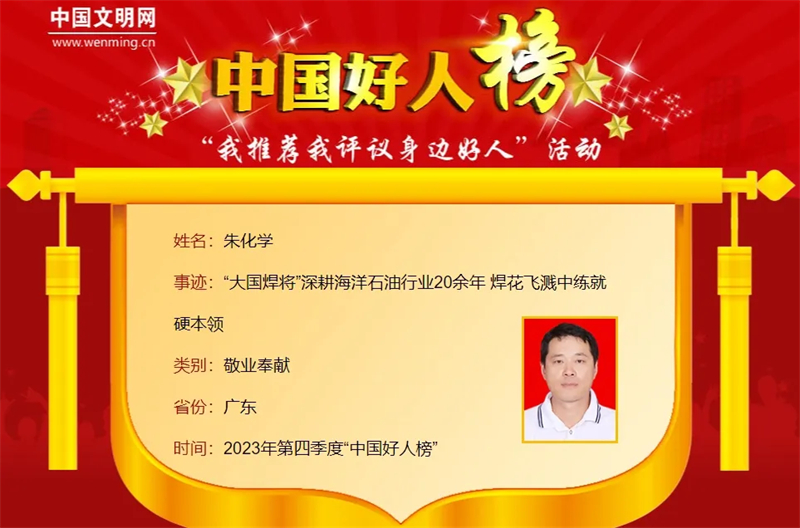 朱化学在焊接间隙稍作休息。广东省文明办供图
