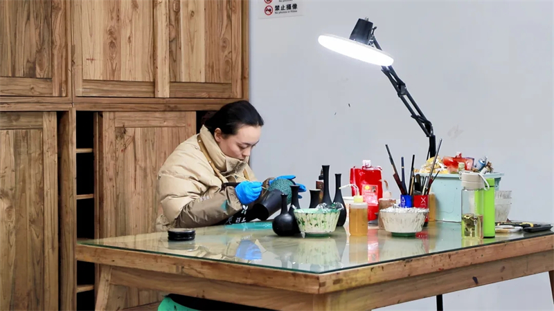 袁秋独自研究漆器制作。重庆市城口县委宣传部供图