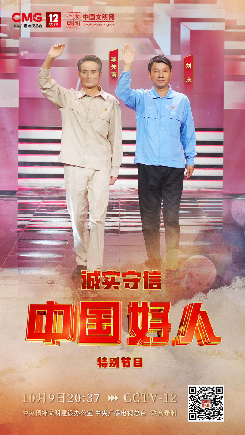 10月9日20点37分,“中国好人”特别节目将在中央广播电视总台社会与法频道(CCTV-12)首播。今晚,我们将向您讲述12个平凡但感人的故事,礼赞凡人善举,集聚奋进力量!