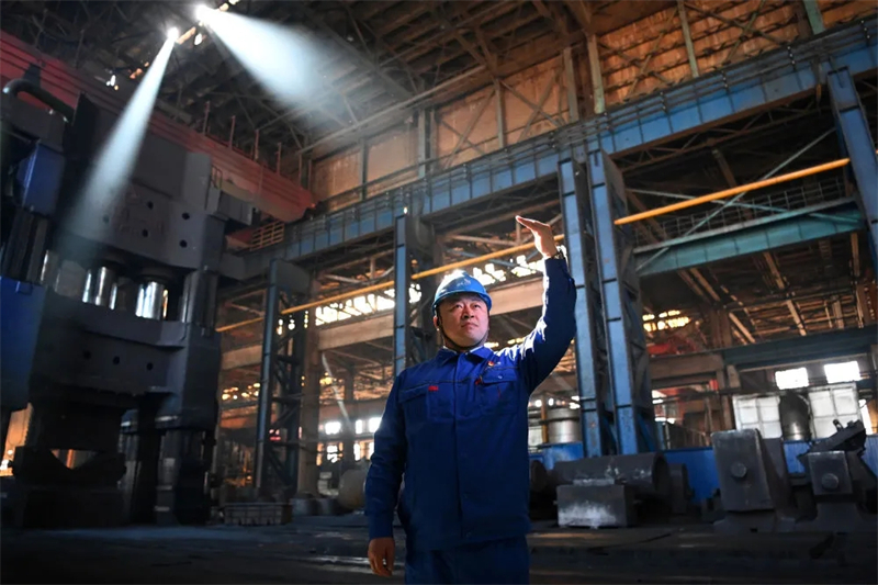 操作这1.5万吨的庞然大物——自由锻造水压机的,正是大国工匠、中国一重集团铸锻钢事业部水压机锻造厂副厂长刘伯鸣。