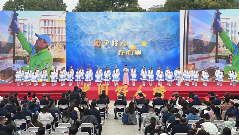 2024年第三季度“中国好人榜”发布仪式暨全国道德模范与身边好人现场交流活动在湖北省十堰市丹江口新时代文明实践广场举办。图为表演者现场演唱歌曲《好人》。高晟寒 摄