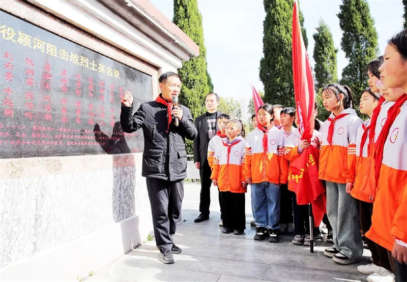 陈广安为参观的学生讲述烈士故事。图片由安徽省文明办提供