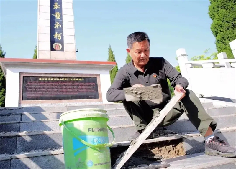 陈广安擦拭墓碑。图片由安徽省文明办提供