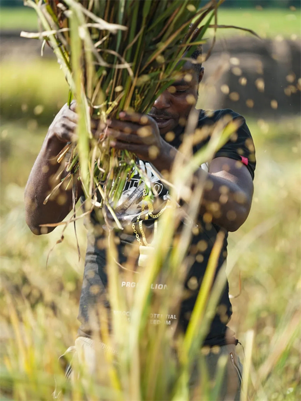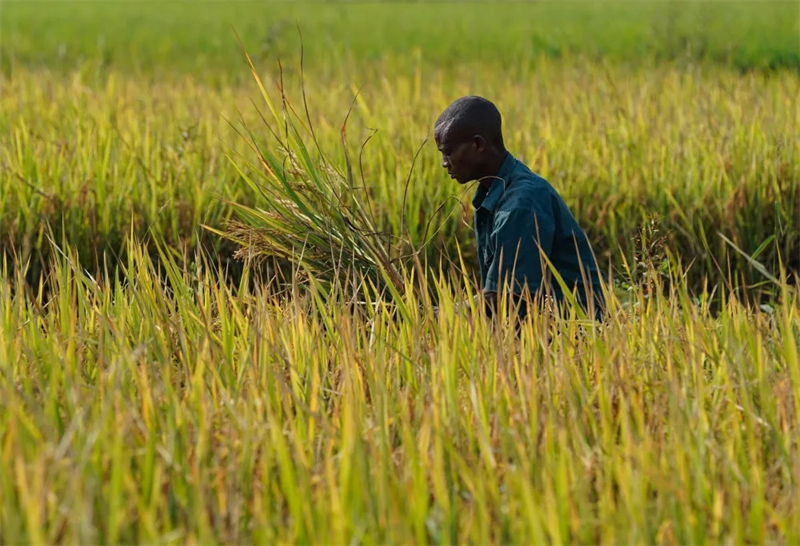 在布隆迪布班扎省吉汉加县,农民在田间收获杂交水稻。新华社记者 韩旭 摄