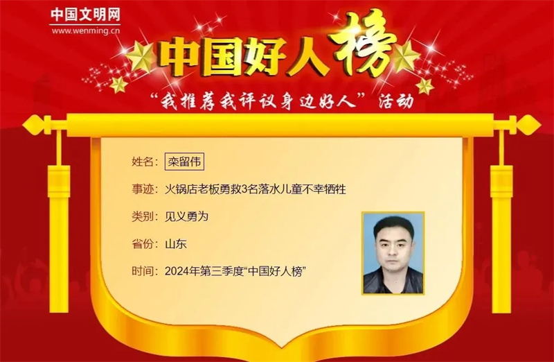 栾留伟走了,他的火锅店门口排起长队。山东省文明办供图