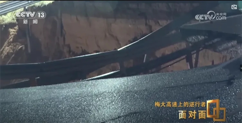 黄建度一行在凌晨1点55分经过事发路段,赶在道路塌方前的最后一瞬间“飞跃”深坑。