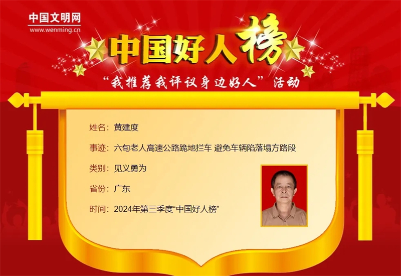 “一个人(一生)才几十年,我的性格就这样,第一凭良心做事。”黄建度说。前不久,他又一次回到老家,看到自己用“见义勇为”奖金捐种的香樟树,在当地示范村口直挺挺地立着,叶子很大,“很茂盛”。