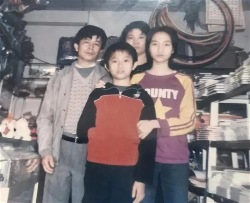 黄建度夫妇和女儿、儿子。(摄于2000年在东莞开文具店时)