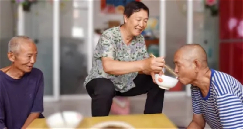 赵春梅(中)在照料丈夫和小叔子。青县文明办供图