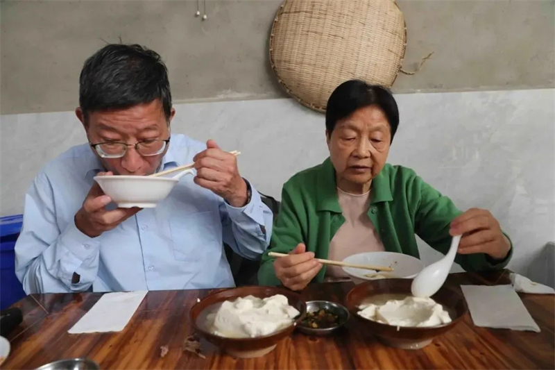 忻元华和滕崇在吃午饭。来大凉山支教,吃饭并不是很便利,两人有时就简单吃点,对付一餐。图片来源:宁波晚报