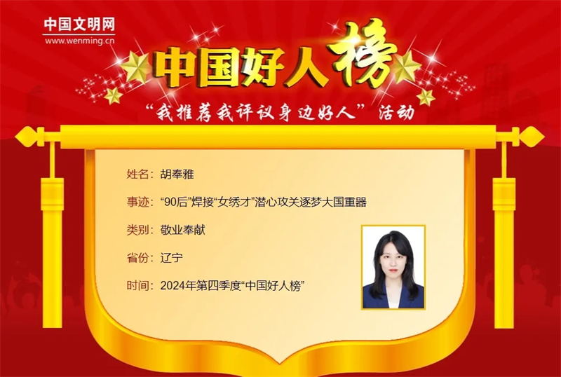 时光倒回至2008年。正在备战高考的小奉雅在电视上第一次看到2008年夏季奥运会主体育场鸟巢的结构。“电视上一位焊接女工程师说,好几个人连续工作几十个小时,才将鸟巢其中的一个焊缝成功焊接。”16年后,胡奉雅对那个夜晚仍然记忆犹新。