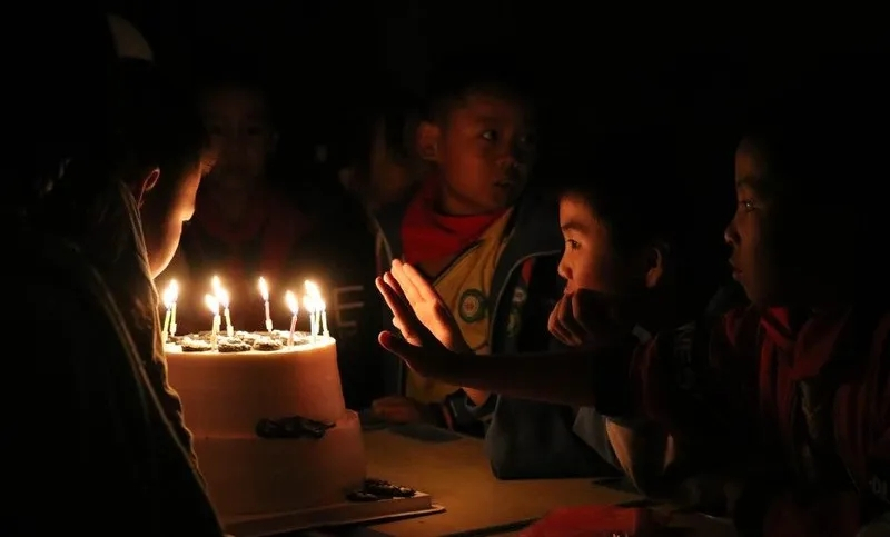 2024年11月9日晚上,孩子们点燃生日蜡烛,准备给黄梅生一个惊喜。央广网记者 刘培俊 摄
