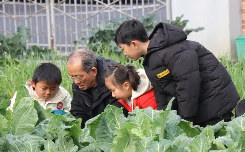 黄梅生给孩子们讲解蔬菜种植知识。央广网记者 刘培俊 摄
