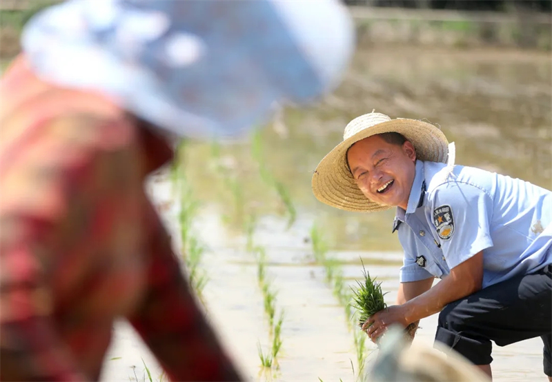 农忙季节,李涛撸起袖子,帮助辖区困难群众插秧干农活。湖北省文明办供图