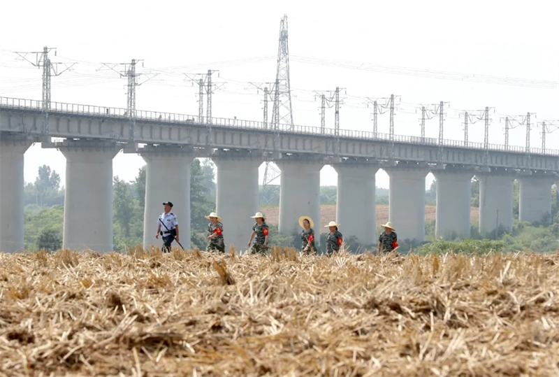 李涛带领队员,穿梭在辖区铁路沿线开展常态化巡逻。湖北省文明办供图