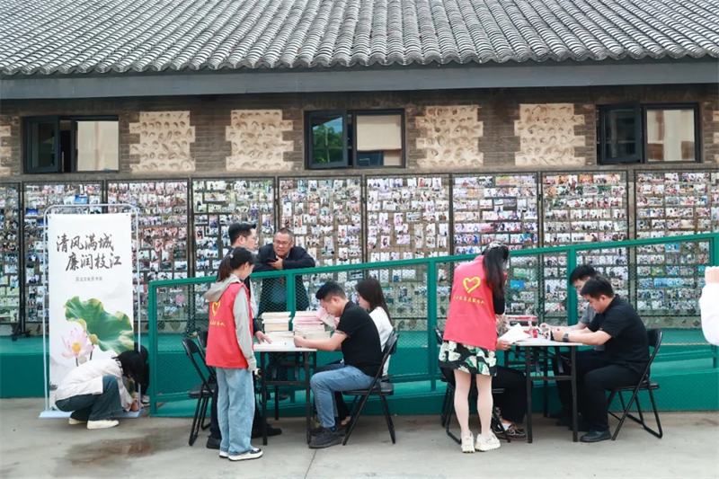 岛上书店新店启用,现场同步开展流动图书进乡村文明实践活动。湖北省文明办供图