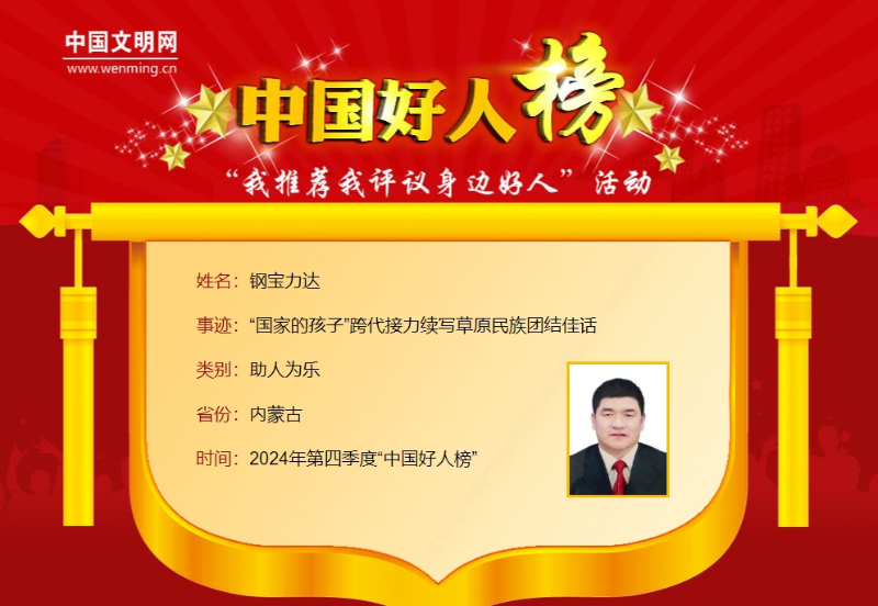 “我的父母都是‘国家的孩子’,在上世纪60年代初经济困难时期,他们从上海被接到内蒙古大草原生活,国家给了他们第二次生命。”钢宝力达说,作为一名“国家的孩子”的孩子,他想力所能及地为家乡父老、过往路人提供帮助,回报家乡,回馈社会。