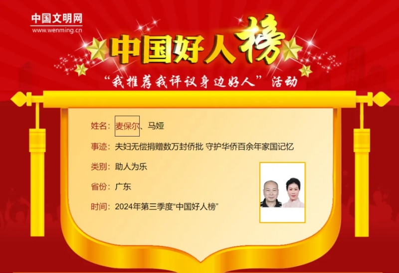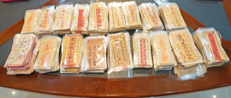 2022年10月马娅与女儿麦琳琳向汕头市档案馆捐赠侨批档案。广东省文明办供图