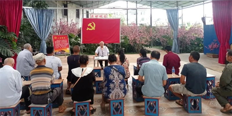 此后几年间,张建生精心规划、用心布置,门框上的对联在默默地说着话:“小处处处拥护共产党,大家家家热爱新中国”“坚定不移跟党走,世代传承不变心”。“我是一个行外人,要打造这样一个阵地,我只能摸索着来,那里挖挖、这里改改,能有现在的样子我反复改建了10多次。”2007年,张建生开始用自家庭院为党员及附近群众进行免费宣讲。