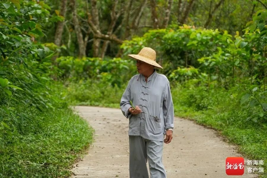 “长着成团小白花的,黎语叫‘雅佛’,学名走马箭,我叫它接骨草,舒筋活血,是治疗骨折的一味重要的草药。”王永积站在路旁,指着30米远的一株植物说着:“这样的常用药,见了快50年了,再远的距离,只一眼就能认得。”