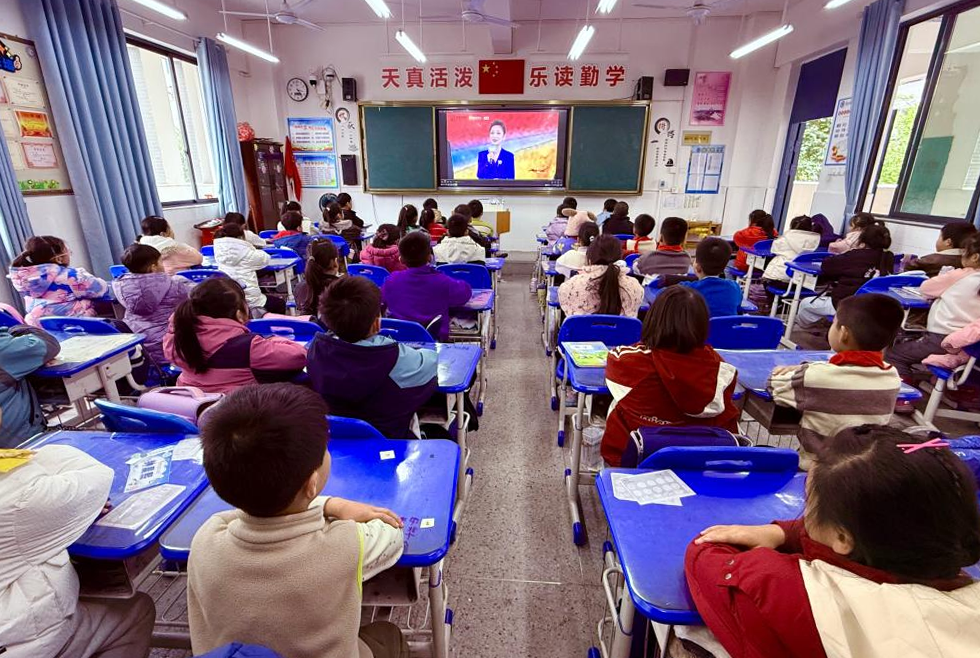 柳州市滨江小学总部师生观看“中国好人榜”发布仪式。
