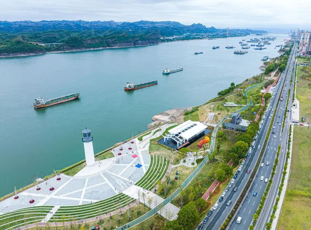 湖北宜昌市滨江公园灯塔广场。该广场是在实施岸线复绿等综合措施后,由老旧码头改造而成。