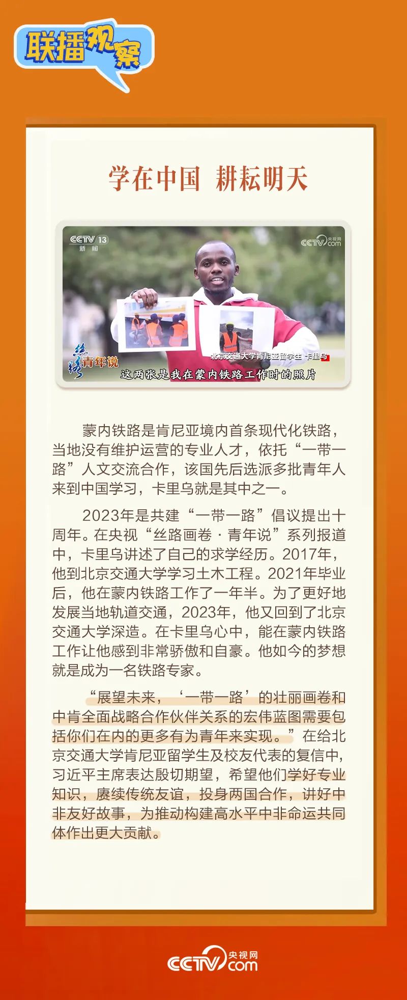 日前,北京交通大学肯尼亚留学生及校友代表致信习近平主席,表示非常高兴来到中国学习铁路运营管理知识。1月17日,习近平主席复信表达欣慰和喜悦之情,“蒙内铁路是中肯共建‘一带一路’旗舰项目和成功典范。我高兴地看到,你们因这条‘幸福路’与中国结缘……”
