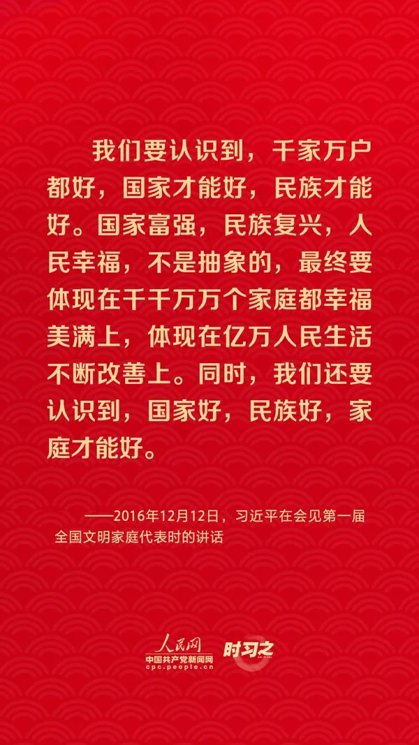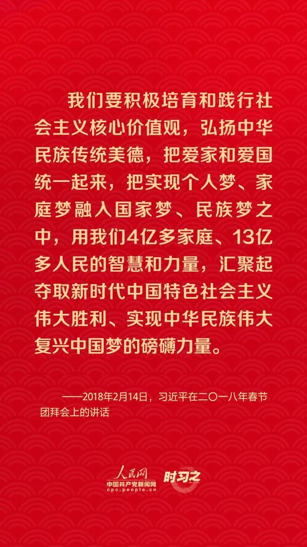 团圆是春节永恒的主题。“没有国家繁荣发展,就没有家庭幸福美满。同样,没有千千万万家庭幸福美满,就没有国家繁荣发展。”习近平总书记曾在多个场合深刻阐述家庭与国家之间的关系,从他的话语里一起感悟深厚的家国情怀。