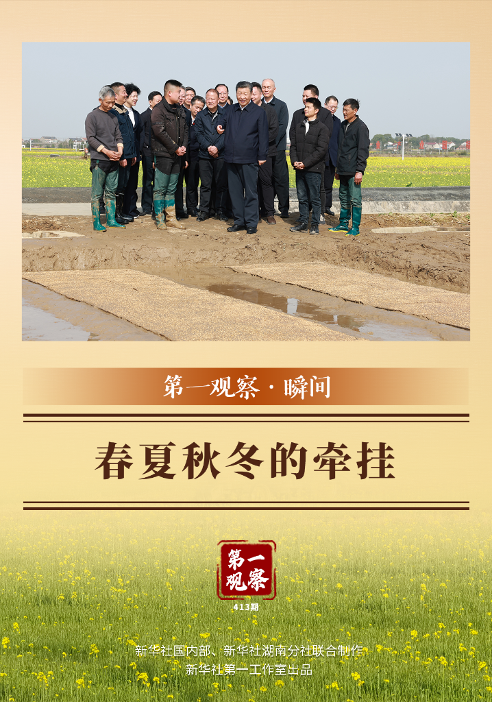 在关键农时,习近平总书记一次次来到田间地头,察看粮食生产,倾听农民心声。种子、耕地、收成、收入……一桩桩,一件件,都是“国之大者”。这一张张照片记录的四季变化,见证了总书记对矢志不渝端牢中国饭碗的关切。