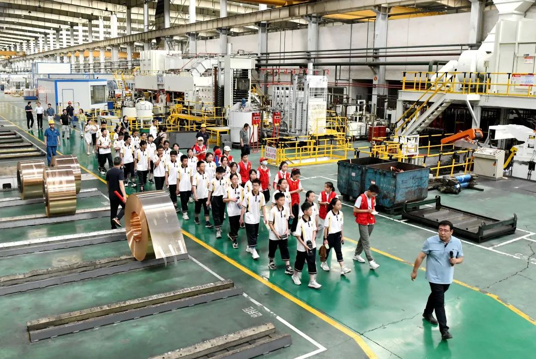 2023年6月9日,在安徽省铜陵一家公司的铜板带制造车间,铜陵市第七中学学生在上“行走的思政课”。