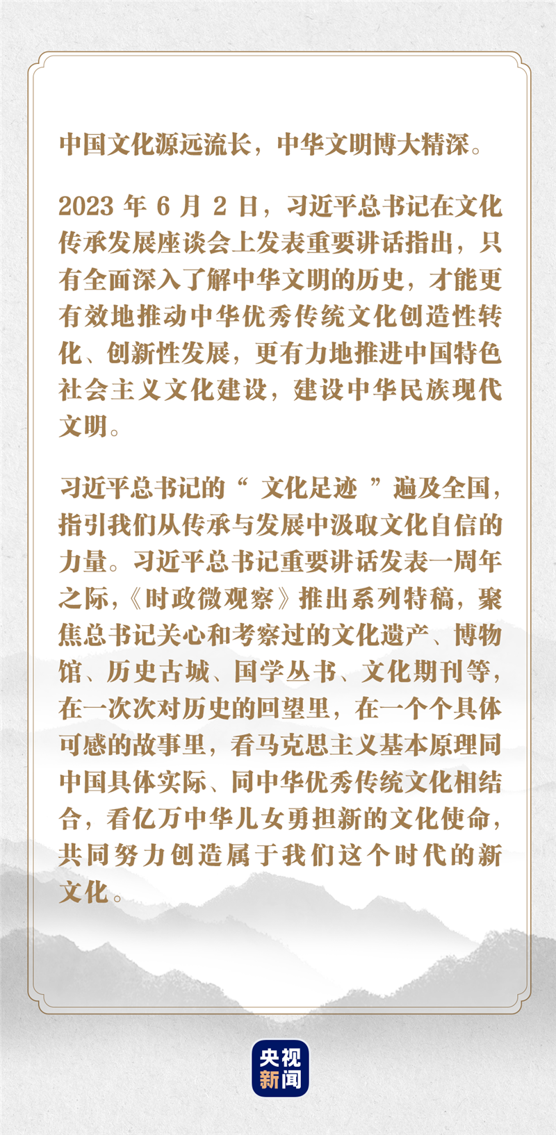 去年,在文化传承发展座谈会上,习近平总书记指出,自信才能自强。有文化自信的民族,才能立得住、站得稳、行得远。中华文明历经数千年而绵延不绝、迭遭忧患而经久不衰,这是人类文明的奇迹,也是我们自信的底气。