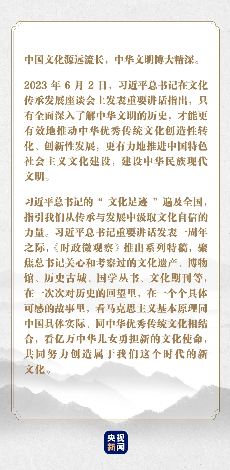 新时代赋予我们新的文化使命,让中华文明“亘古亘今”、让中华民族“日新又新”,一幅“建设中华民族现代文明”的美好画卷正在神州大地徐徐绘就。