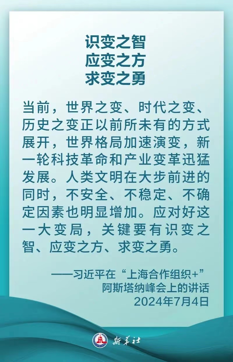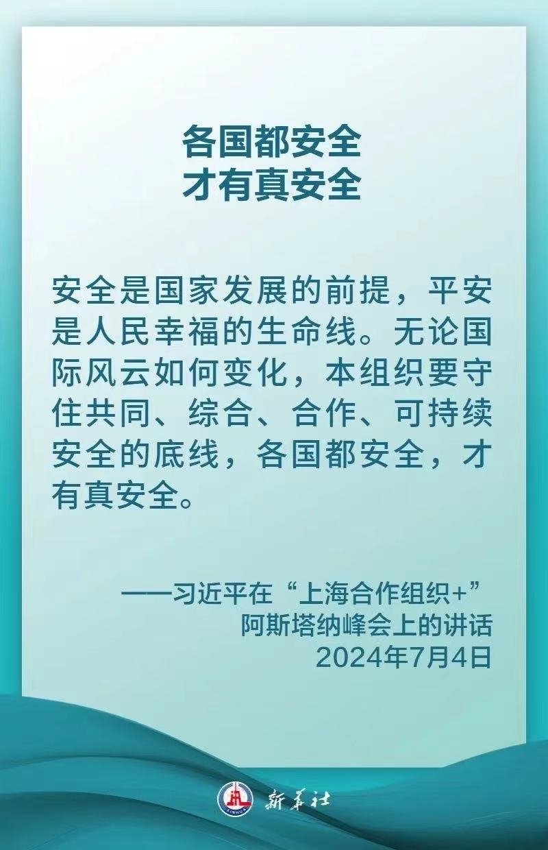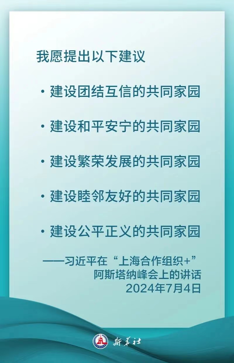 当地时间7月4日下午,国家主席习近平在阿斯塔纳出席“上海合作组织+”阿斯塔纳峰会并发表题为《携手构建更加美好的上海合作组织家园》的重要讲话。