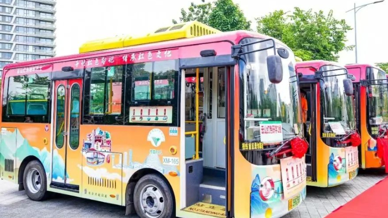 7月19日,“云·飞扬”白云文化欢乐季系列活动之“寻访红色印记 传承红色文化”云山红色研学巴士正式首发。红色地标与白云山水一道“爬”上红色研学巴士的车身,两条各具特色的研学路线,串联起广东兵工总厂中共支部史迹展等红色地标和白云区图书馆等城市文化新地标。据悉,云山红色研学巴士逢周六发车,将持续运营一年。孩子们搭乘巴士,红色志愿宣讲员为乘客宣讲,以游学的方式,播撒“红色种子”,引导广大未成年人“听党话、感党恩、跟党走”。