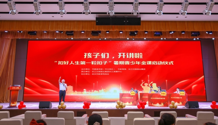 《孩子们,开讲啦》——“扣好人生第一粒扣子”暑期青少年“金”课启动仪式现场。图片来源:长江日报