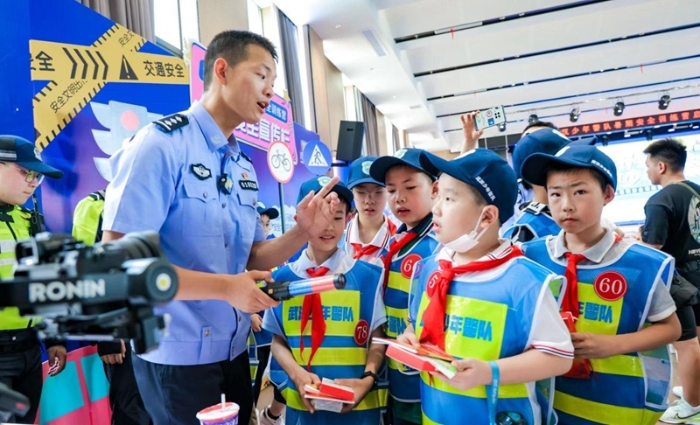 武汉少年警队暑期安全营中,交警介绍酒驾的危害。图片来源:荆楚网
