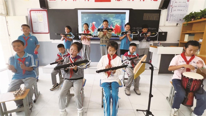 在兴庆区第十八小学官湖校区,总能听到悠扬的音乐声。教室中、走廊上,课余时间学生们两个一伙、三个一群自发吹奏口风琴。