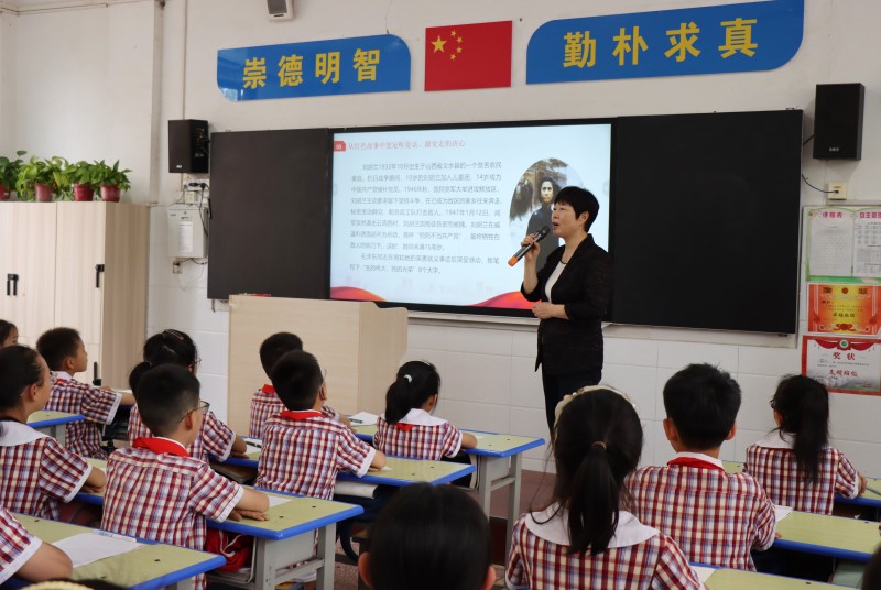 南阳市第二十一学校思政课上,同学们正在聆听英雄事迹。