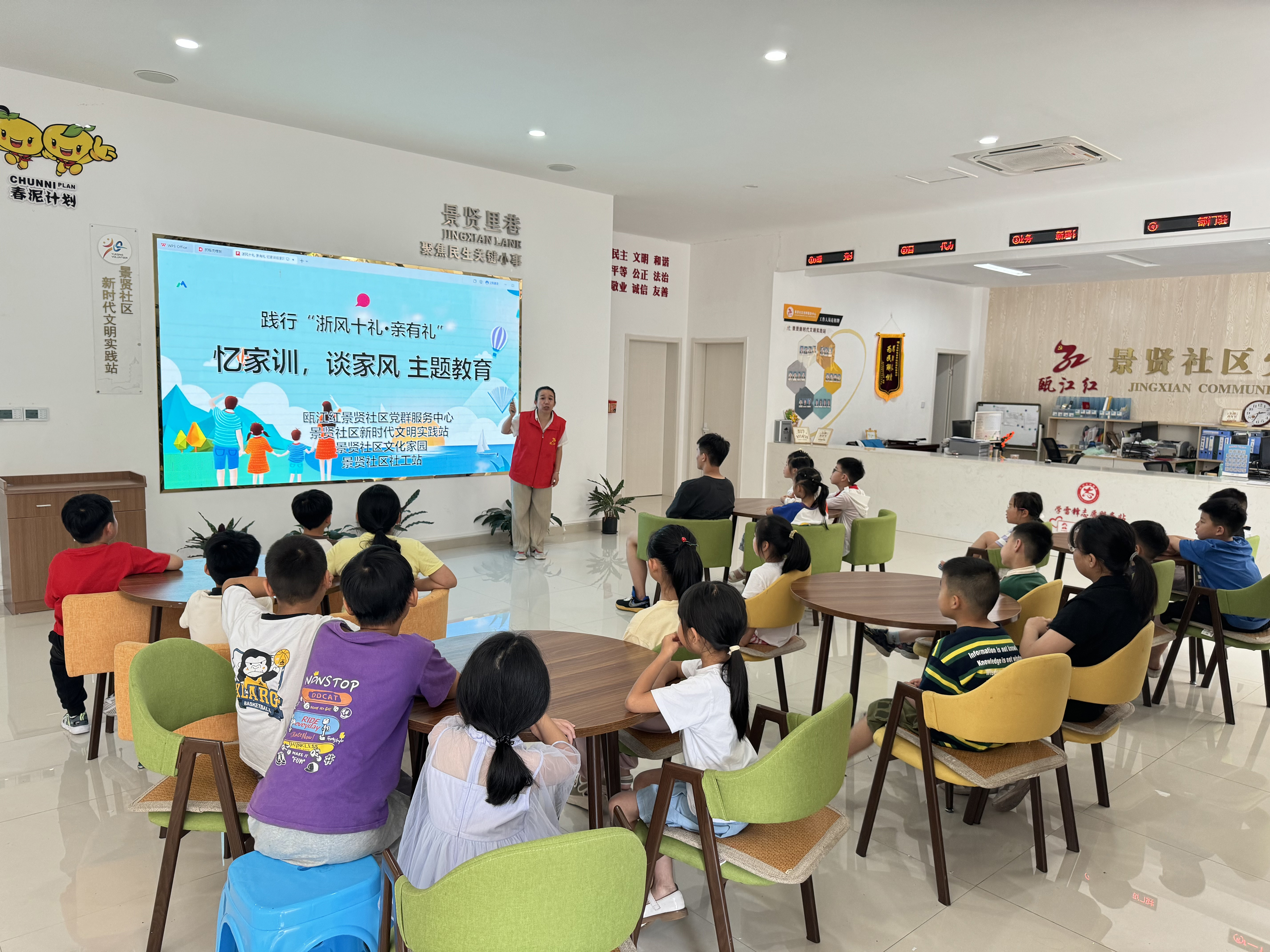 湖雾镇新时代文明实践所为孩子们带来了一堂生动有趣的“浙风十礼”课程,传达“浙风十礼”的内在价值和行为准则,倡导青少年在日常生活中讲礼貌、守礼仪。城南街道南草垟社区新时代文明实践站志愿者讲解“用餐要光盘,聚餐用公筷”的文明好习惯,引导孩子们杜绝餐饮浪费,厉行勤俭节约。乐成街道景贤社区新时代文明实践站开展“浙风十礼·亲有礼”忆家训谈家风主题教育,讲述家风故事,推进优良家风家训的学习与传承。雁荡镇新时代文明实践所通过开设红色课堂、用好红色资源、讲好红色故事等形式,增强青少年的爱党爱国情怀。暑期以来,乐清市不断丰富有礼内涵,开展丰富多彩的新时代文明实践活动,让文明的种子在孩子们心中生根发芽,最终做到内化于心、外化于行,推动形成人人学礼践礼、处处见礼展礼的生动场景。
