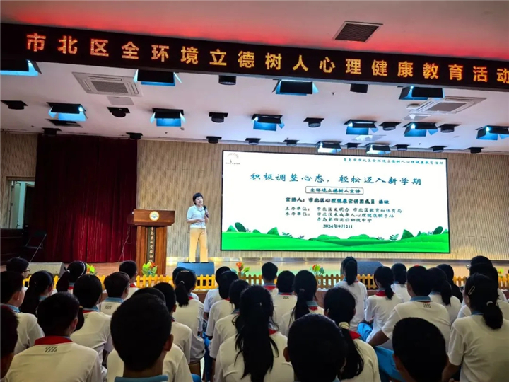 市北区举办开学第一课心理健康教育活动,为刚步入初中生活的学生,带来全环境立德树人宣讲,帮助学生尤其是学段初始年级学生尽快适应学校新环境,引导学生接纳学习、身体、心理成长的新状态。