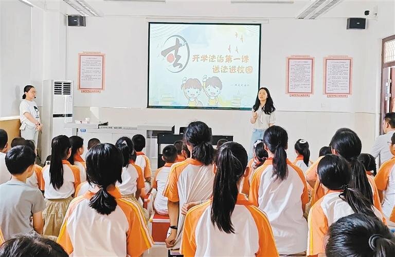 结合学生们的年龄特点和生活实际,今年“开学法治第一课”活动,紧扣家长、老师关切的热点问题有针对性地开展了反欺凌、防性侵、防电诈、防网络沉迷等方面的法律法规宣传。