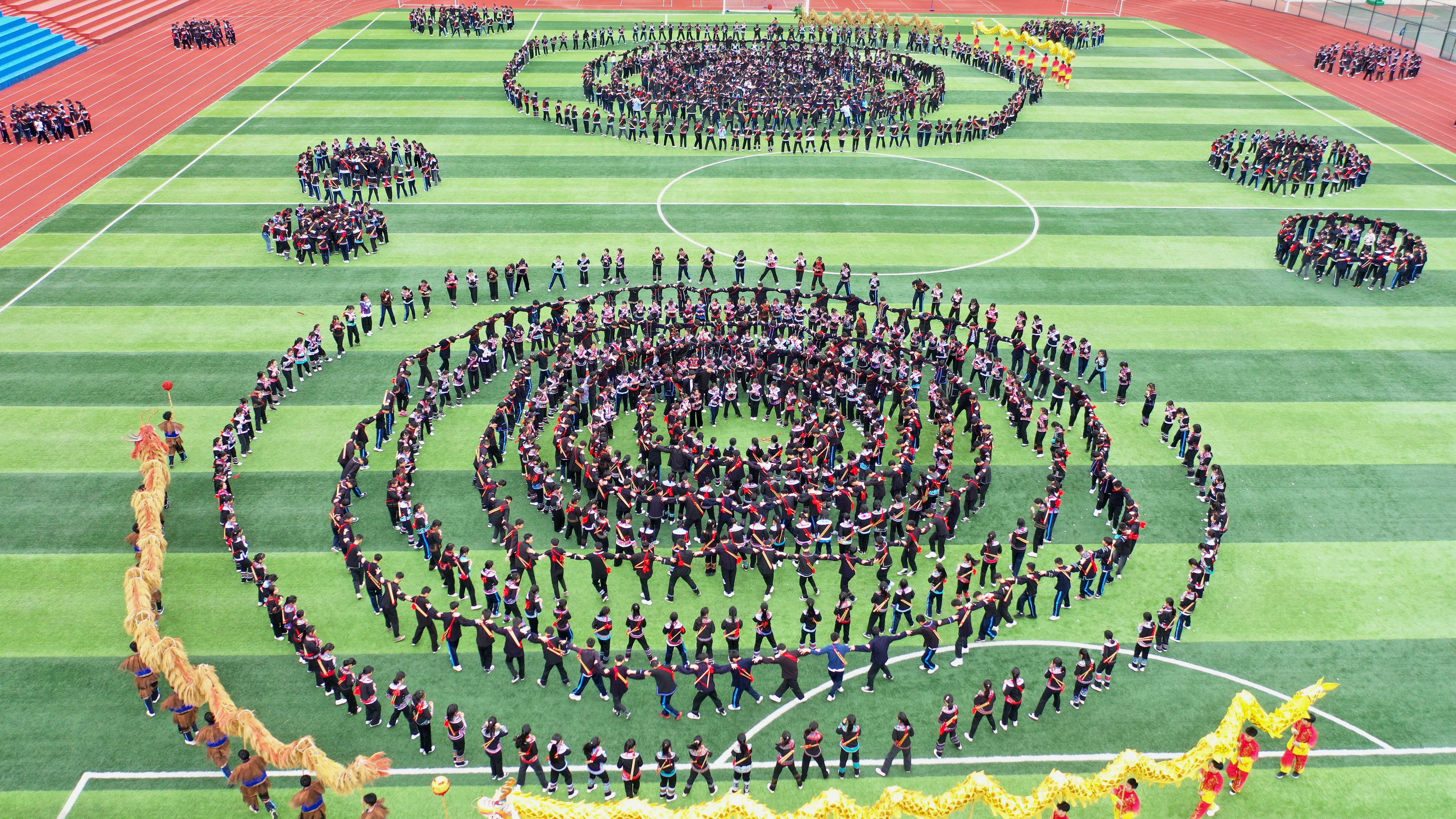 册亨县民族中学大课间跳布依族转场舞。册亨县文明网供图