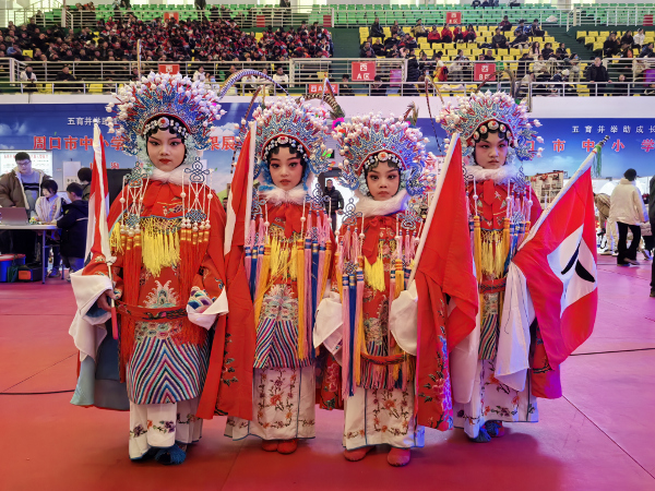 周口市体教融合成果展美育展示类中的戏曲展演。