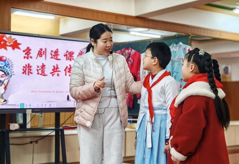 南昌市邮政路小学射步亭校区邀请江西省京剧团的演员来到学校,开展“京剧进课堂 非遗共传承”活动。杨紫韬 摄