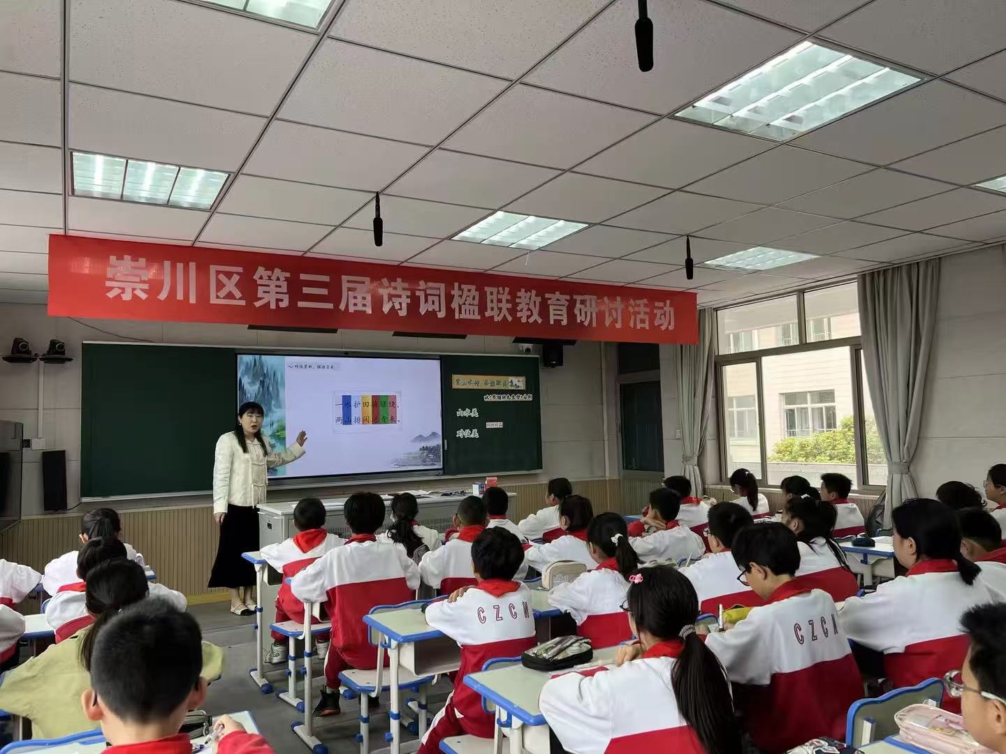在崇川区第三届诗词楹联教育研讨活动中,来自五里树小学、天生港小学的教师通过《送友人》赏析、“换词对句”游戏等方式,探索诗词楹联融入课堂的路径。崇川区31名骨干教师定期参与培训、研讨,成为区诗词楹联教育讲师团成员,充分带动起师生们的创作热情。
