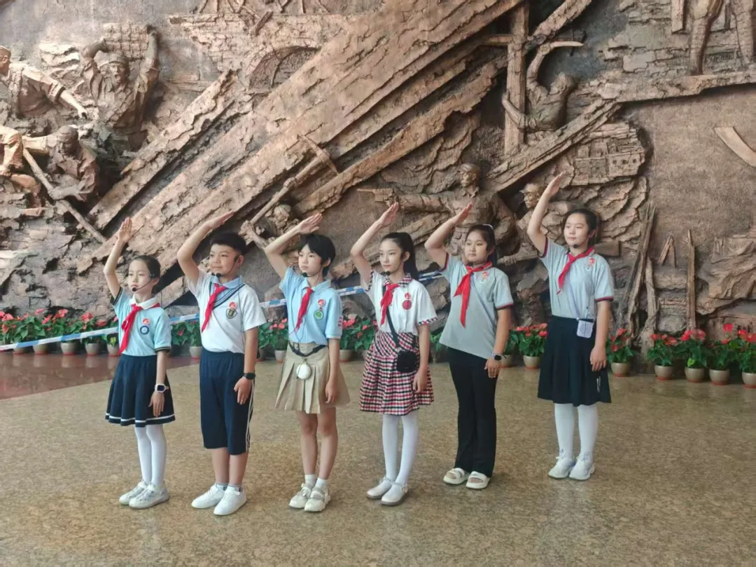从踏上百团大战纪念碑红色旅游专线起,红领巾讲解员便开启红色故事移动讲解,让市民和游客在观景途中接受红色教育。进入馆内,他们主动将红色传承融入讲解,配合馆内讲解员重点讲述百团大战关键战役与英雄事迹。