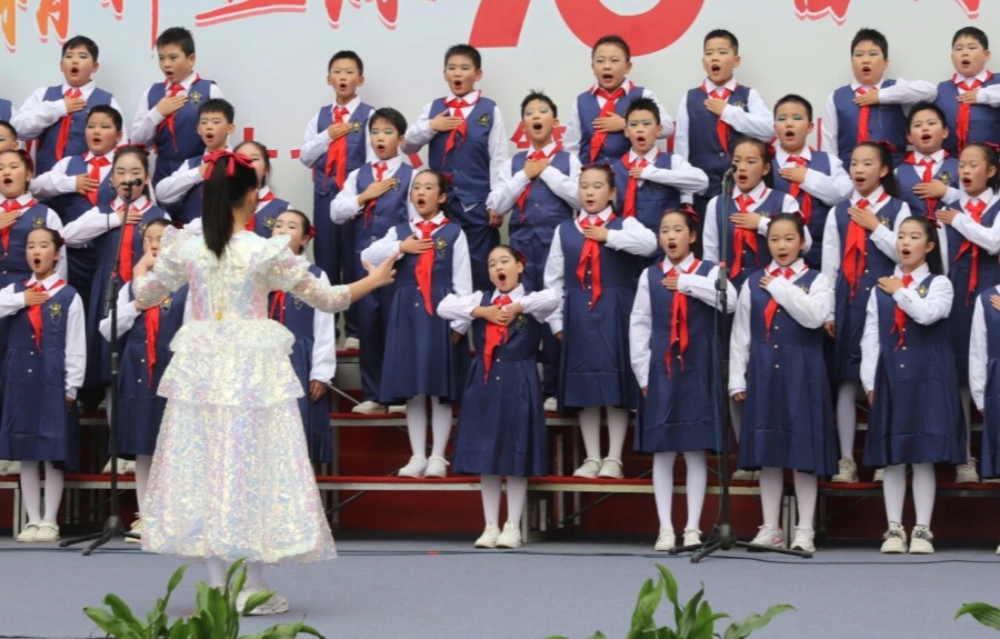 南阳市第十七小学校举行红歌赛。南阳市第十七小学校供图